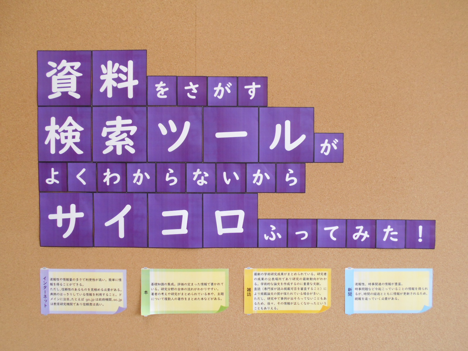 展示?イベントのお知らせは、学内掲示板や館内インフォメーションボードで確認できます。