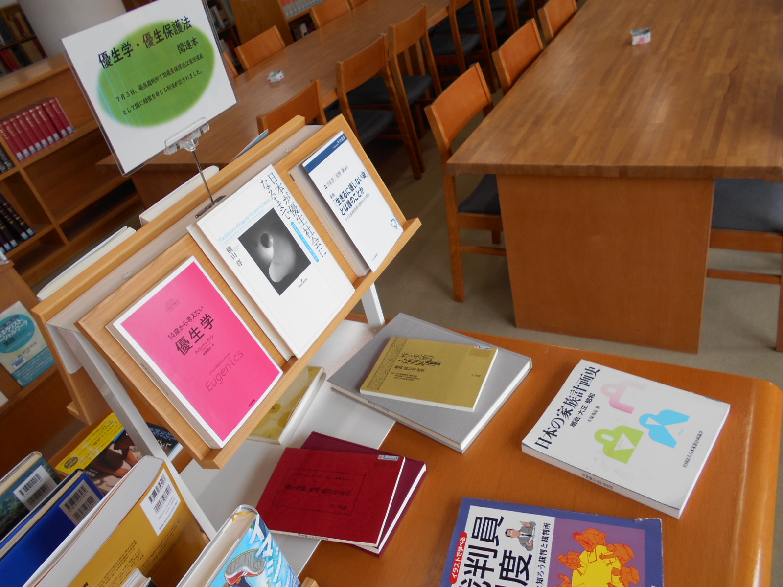今年4月にリニューアルした一番新しい展示スペースです。隣の新着図書とあわせて、ぜひチェックしてください。