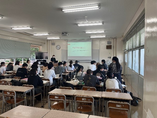 7月7日(月)の「ソーシャルワーク実習指導Ⅰ」にて、本学の卒業生で「多機能型事業所たちばな」児童発達支援管理責任者の松永奈菜先生に講師としてお越しいただき、夏季休暇中に実習(ソーシャルワーク実習Ⅰ)を予定している実習生に向けて、実習の心得や実習生としてのマナーに関してお話をしていただきました。