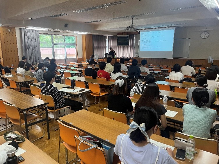 7月16日(水)の「ソーシャルワーク実習指導Ⅱ」にて、長崎みなとメディカルセンターで医療ソーシャルワーカーをされている鰐口研人先生に講師としてお越しいただき、夏季休暇中に実習(ソーシャルワーク実習Ⅱ)を予定している実習生に向けて、病院における社会福祉士の業務内容や、多職種との関わり、実習中のマナーなど、事例を用いながらお話をしていただきました。