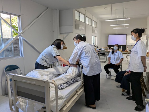 お互いの言語や文化が異なるなかで、どのようにしたら相手に伝わるのかを考えて工夫を凝らした授業を行いました。その中で、ことばや文化を越えて心が通じ合う瞬間がありました。「介護の原点は、相手を思いやる心と心のつながり」それを改めて感じた7日間でした。